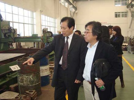 虞培清董事長陪同高橋幸司教授等與會人員參觀公司生產車間