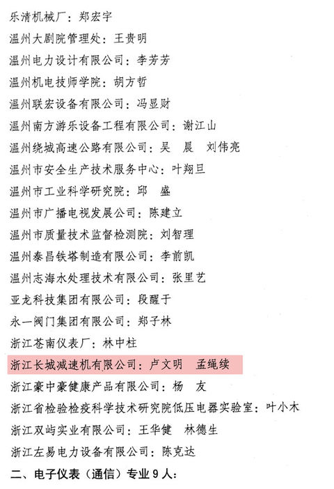據(jù)溫人社發(fā)[2011]80號文件知,我公司技術(shù)中心盧文明和孟繩續(xù)日前經(jīng)量化考核和專業(yè)理論知識考試,并經(jīng)溫州市工程技術(shù)評審專家小組業(yè)績評估和答辯,獲得工程師任職資格。該任職資格從2011年11月3日開始計算。