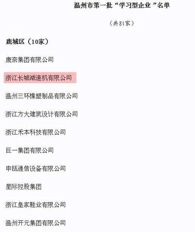 日前,溫州市創(chuàng)建學(xué)習(xí)型黨組織工作領(lǐng)導(dǎo)小組辦公室對在各縣(市、區(qū))開展學(xué)習(xí)型企業(yè)創(chuàng)建工作中涌現(xiàn)出的先進(jìn)單位進(jìn)行表彰。我公司被授予溫州市第一批“學(xué)習(xí)型企業(yè)”榮譽稱號。