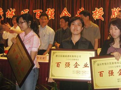 2006年5月19日下午,在由鹿城區(qū)企業(yè)聯(lián)合會(huì)和企業(yè)家協(xié)會(huì)召開(kāi)的五屆四次會(huì)員大會(huì)上,舉行了2005鹿城區(qū)百?gòu)?qiáng)企業(yè)授牌儀式,浙江長(zhǎng)城減速機(jī)等企業(yè)接受了這一榮譽(yù)。