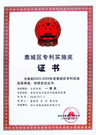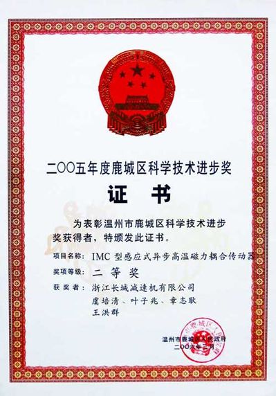 06年6月6日下午,公司代表劉潔等人參加了“鹿城區(qū)自主創(chuàng)新大會”,在大會上,公司獲得三項榮譽,分別為:“溫州市鹿城區(qū)企業(yè)技術(shù)研究開發(fā)中心”、“‘底部導(dǎo)流式高效節(jié)能攪拌裝置’專利實施一等獎”,“‘IMC型感應(yīng)式異步高溫磁力耦合傳動器’科技進步二等獎”。