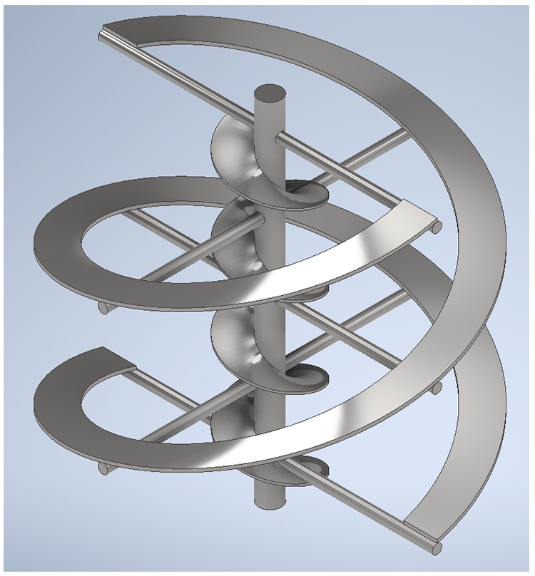 2.有效分割:螺帶外圍均勻分布的橫檔在旋轉(zhuǎn)過(guò)程中對(duì)物料進(jìn)行有效的分割,這樣可以增加物料之間的接觸面積,促進(jìn)混合均勻。