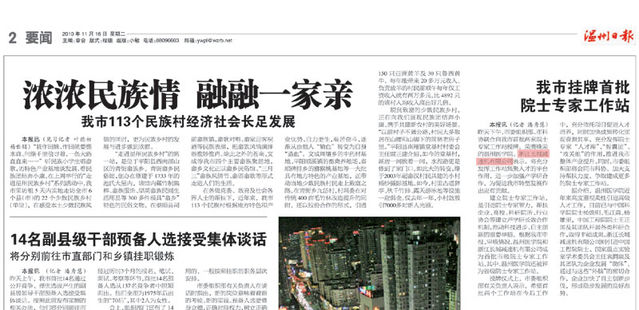 2010年11月16日,《溫州日報》第2版要聞版塊以《我市掛牌首批院士專家工作站》為題報道了我公司企業(yè)院士工作站掛牌成立,當天,《溫州都市生活頻道》“都市新聞”欄目詳細報道了此次授...