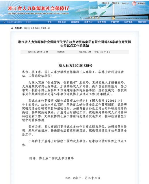 熱烈祝賀我公司獲批浙江省博士后工作站試點單位