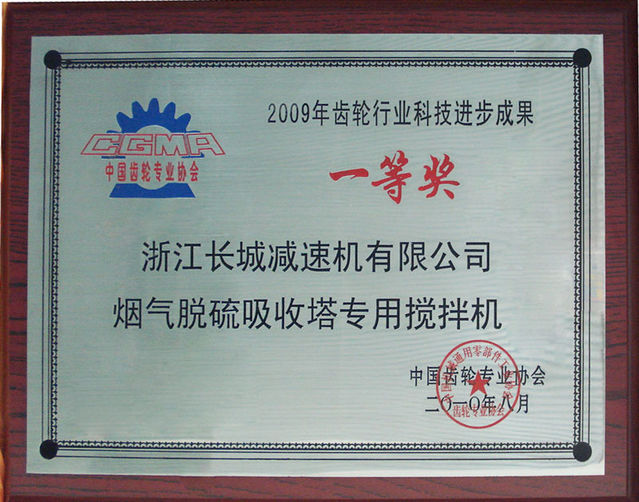 祝賀我公司“煙氣脫硫吸收塔專用攪拌機”榮獲齒輪行業(yè)科技進步成果一等獎