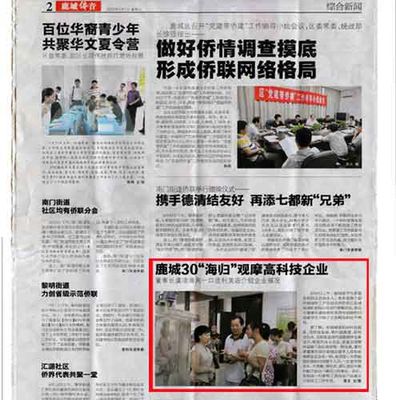 2010年9月1日 星期三 《鹿城僑音》第2版 綜合新聞   “鹿城30“海歸“觀摩高科技企業(yè)”  附詳文如下: 鹿城30“海歸“觀摩高科技企業(yè)         董事長虞培清用...