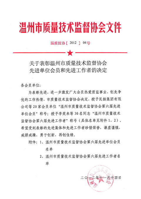 2012年12月7日(星期五)上午,由我公司在內(nèi)的14家企業(yè)組成的鹿城區(qū)首批企業(yè)勞動(dòng)爭(zhēng)議調(diào)解委員會(huì)正式成立,區(qū)協(xié)調(diào)勞動(dòng)關(guān)系三方機(jī)制2012年第2次會(huì)議暨企業(yè)勞動(dòng)爭(zhēng)議調(diào)解委員會(huì)授牌儀式在我公司二樓會(huì)...