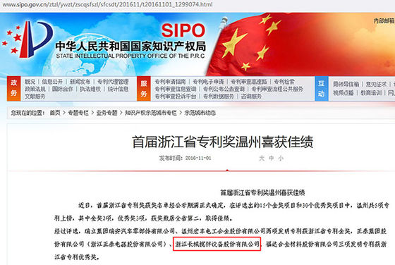 媒體報道-我司榮獲“溫州5企業(yè)獲首屆省專利獎”